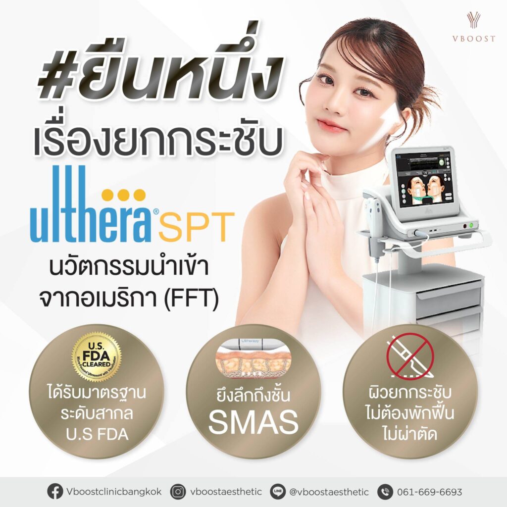 Ulthera เป็นเทคโนโลยียกกระชับผิวด้วยคลื่นเสียงอัลตราซาวด์ที่สามารถลงลึกถึงชั้นผิว SMAS ช่วยยกผิวให้เฟิร์ม กระชับ และดูอ่อนเยาว์ขึ้นอย่างเป็นธรรมชาติ